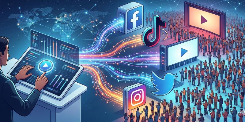 Tự động phát cùng lúc trên nhiều kênh như Facebook, TikTok, YouTube,… giúp mở rộng phạm vi tiếp cận khách hàng.