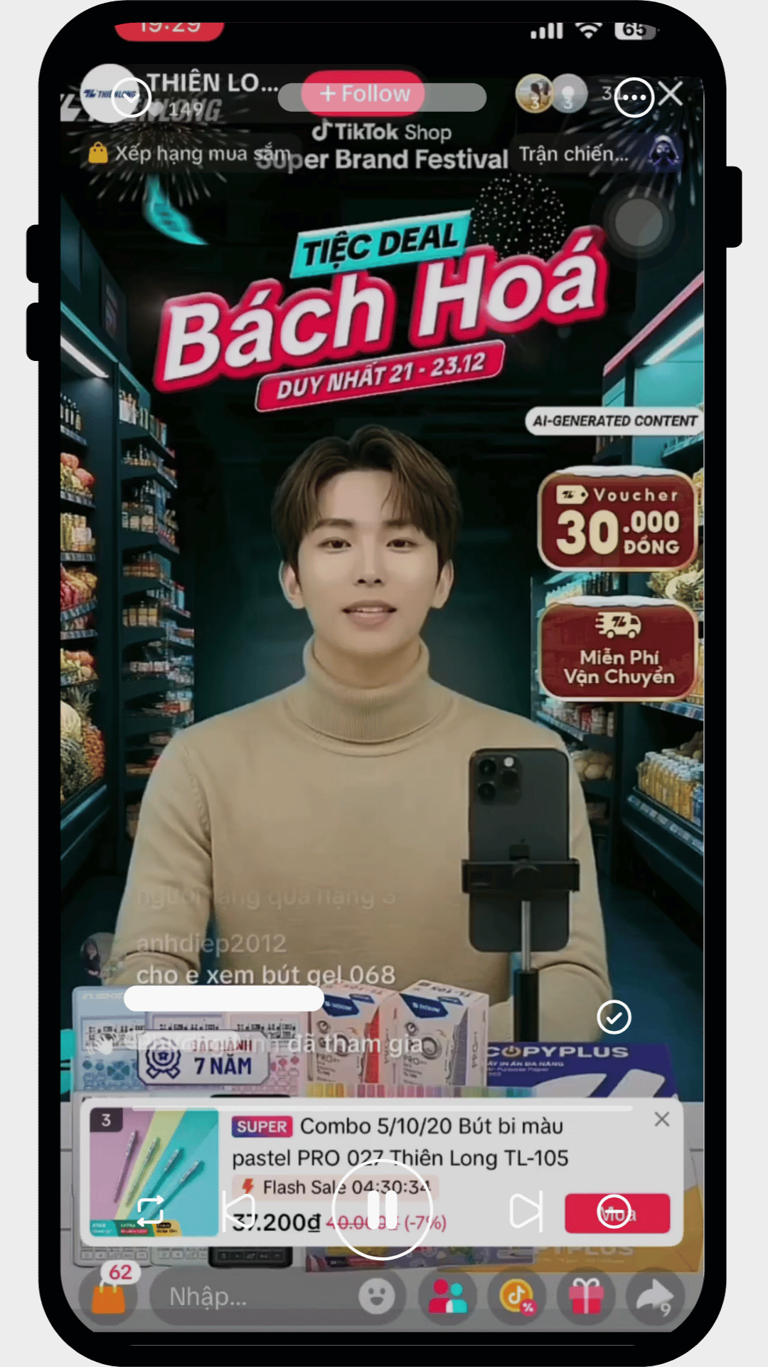 Sử dụng người thật cho các phiên livestream vào giờ cao điểm để thúc đẩy doanh số, và AI Live Streamers vào các thời điểm còn lại